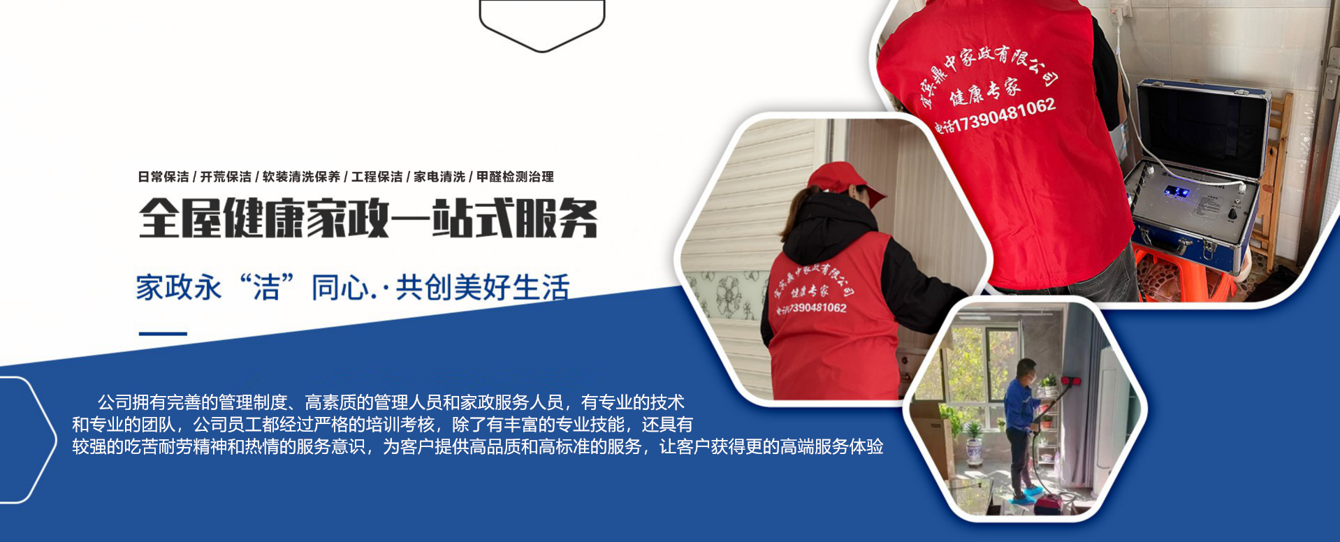 宜賓鼎中家政有限公司,是一家提供家庭健康一站式服務的新型家政公司,本公司提供,日常保潔,開荒保潔,甲醛檢測和治理,家電清洗,軟裝清洗,拋光打蠟,各種養護,工程服務,大型油煙機清洗和中央空調清洗等服務。 我公司起源于2012年,從當時單打獨斗的游擊隊,到現在發展成為一家為家庭提供一站式服務的新型家政公司,有專業的技術工程師和各項服務的專業團隊,服務過無數家庭和事業單位,比如理工大學、宜賓學院開荒保潔,宜賓商業銀行保潔等。 公司擁有完善的管理制度、高素質的管理人員和家政服務人員,有專業的技術和專業的團隊,公司員工都經過嚴格的培訓考核,除了有豐富的專業技能,還具有較強的吃苦耐勞精神和熱情的服務意識,為客戶提供高品質和高標準的服務,讓客戶獲得更******的高端服務體驗。 誠信為本,品質至上,服務于千家萬戶 宜賓鼎中家政有限公司--------竭誠為您服務 聯系人:楊總 電話:17390481062(微信同號) 地址:四川省宜賓市敘州區朱家坡路1號緹香灣